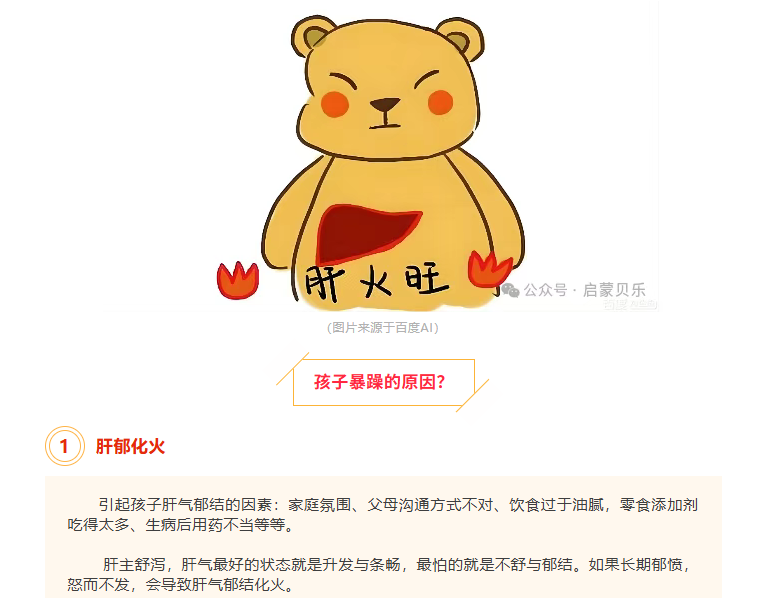 新闻中心 首页»新闻中心»育儿百科»【启蒙贝乐专业调养分享】孩子总是莫名烦躁、发脾气,千万不要否定孩子、批评孩子,有可能是肝火太旺盛! 【启蒙贝乐专业调养分享】孩子总是莫名烦躁、发脾气,千万不要否定孩子、批评孩子,有可能是肝火太旺盛! 2026-1-20 09:01:46 广州白云山拜迪生物美好时光康健事业部 阅读 21 上一篇« 【启蒙贝乐专业调养分享】百病从肝治,肝好五脏安 下一篇【启蒙贝乐专业调养分享】人到中年肝“报警”?从吃喝到作息,给职场人的护肝指南 » 【启蒙贝乐专业调养分享】孩子脾气大、难带、爱哭闹?不是性格差,可能是“阴虚火旺”在作怪! 2025-10-28 09:10:14 广州白云山拜迪生物美好时光康健事业部 阅读 85 上一篇« 【启蒙贝乐专业调养分享】头晕、乏力、食欲差?别忽视!这种“隐形健康杀手”可能已经盯上你——贫血 下一篇【启蒙贝乐专业调养分享】牙齿缺钙的人,其他方面也需注意! »